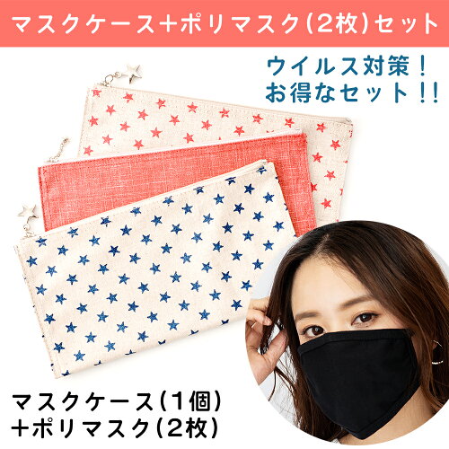 【メール便送料無料】【在庫あり】【マスクケース+ポリマスク(2枚)セット】マスク ポリマスク 洗えるマスク 黒マスク 水着素材 通勤 通学 防寒 通気性 抗ウイルス マスクケース マスク 保管 かわいい ポーチ 携帯 持ち運び 日本 日本製 抗菌 布製 抗フィルター おしゃれ